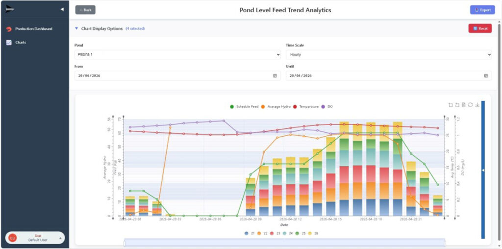 Desarrollado en colaboración con operaciones acuícolas comerciales, Jetfeeder Analytics incorpora capacidades como la definición de líneas base, comparaciones entre piscinas y entre ciclos, y el seguimiento completo del historial productivo por período o ciclo.